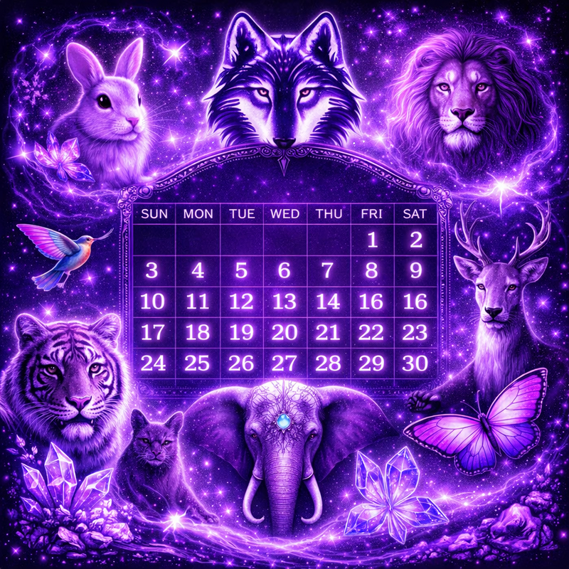 You will learn exactly which animal will be supporting you each month of the year.  You will be given 12 animals that will accompany you throughout the year. You are able to step confidently into each month with the knowledge of which animal's power is sourcing you.